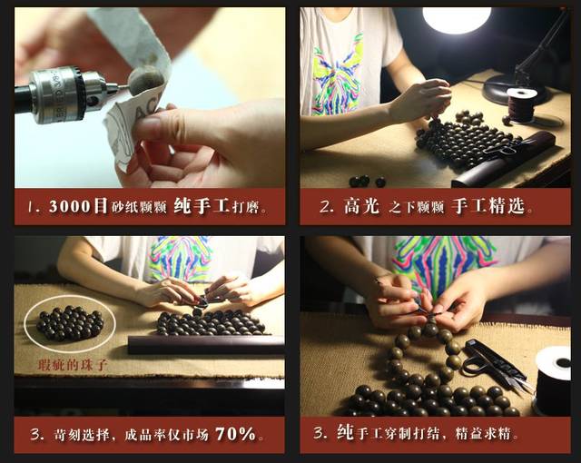 每一颗佛珠都是纯手工精致打磨至3000目,再用布轮机抛光,让珠子以最佳的品相展现出来,手感非常温润细腻。