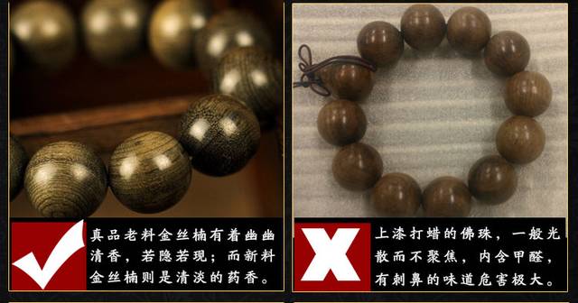 市面上打着金丝楠木旗号的手串层出不穷,对于外行人又该如何辨别真假呢?别担心,我们购买了世面所出售的各种金丝楠木手串,在经过一系列分析对比之后,为大家提供以下几种鉴别方法。